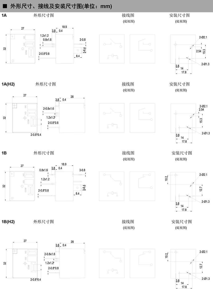 ●快接端子同側(cè)(H1)和異側(cè)(H2)可供選擇