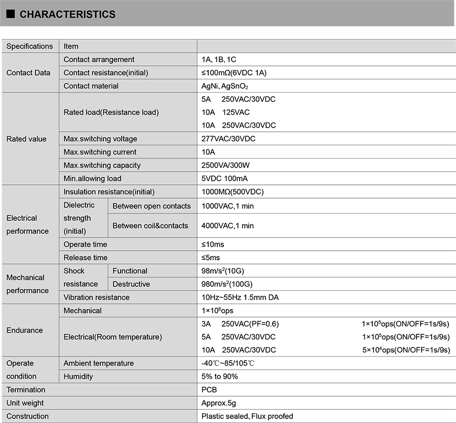 ● Provide high sensitivity type of products, coil power consumption is 200mW