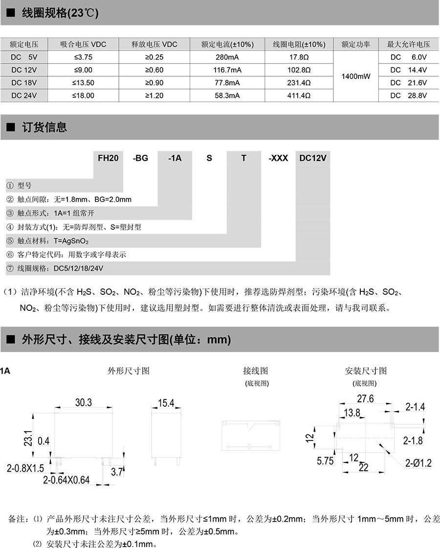 ● 外形尺寸:(30.3×15.4×23.1)mm