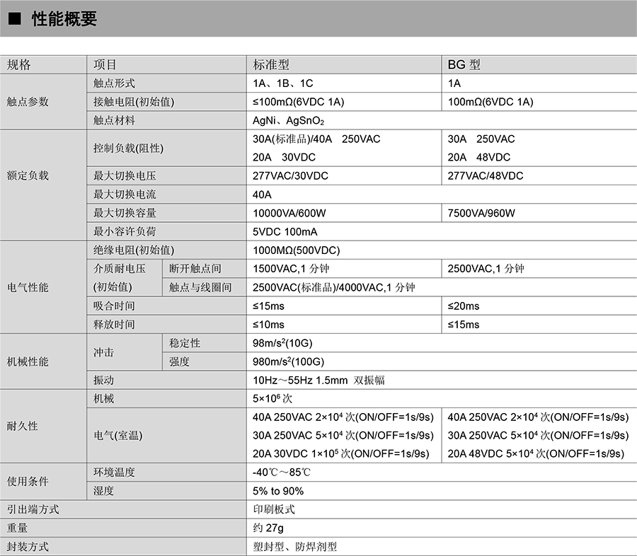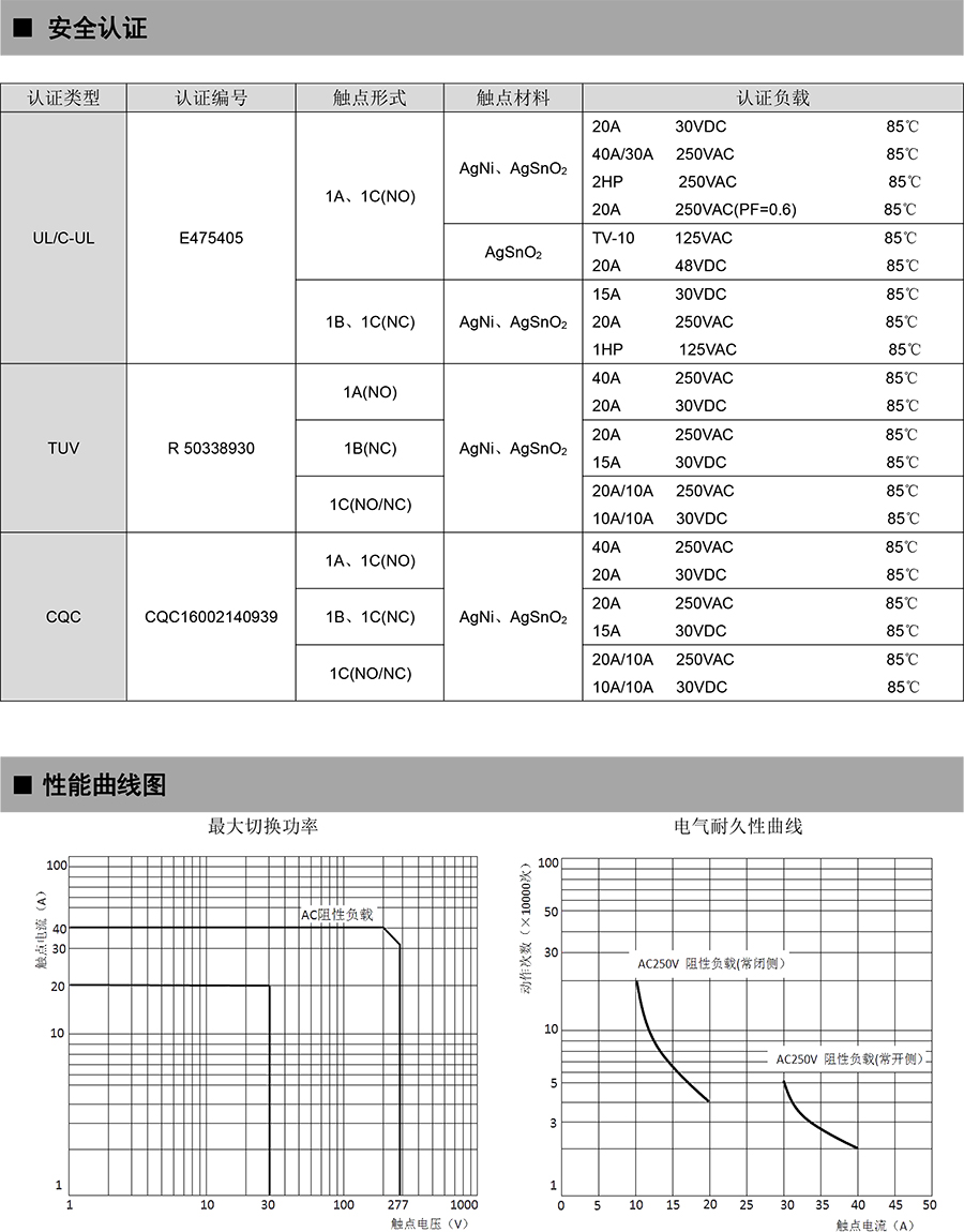 ●40A 觸點(diǎn)切換能力